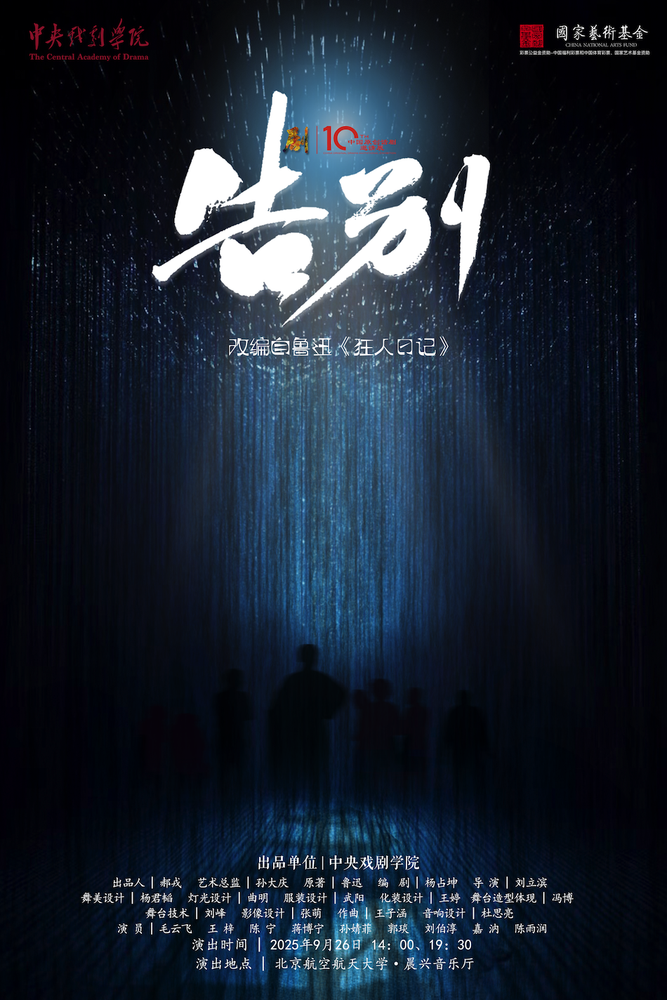 《告别》改编自鲁迅先生的小说《狂人日记》,基于原著思想内涵,展开新的创作以舞台为镜,以历史为炬,追溯往昔的辙痕,将“吃人”这个母题,引向对于人性更广泛意义的思考,让鲁迅先生笔下的锐痛与清醒,在当代舞台上再次焕发光芒。