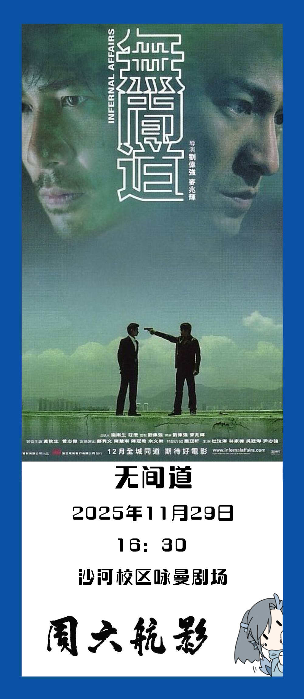 本周让我们一起走进《无间道》,在黑白交织的迷宫中,解开卧底身份的生存密码,在灵魂挣扎的褶皱中,读懂救赎与沉沦的生命难题,在善恶交织的灰色地带中,追问自我存在的终极意义。