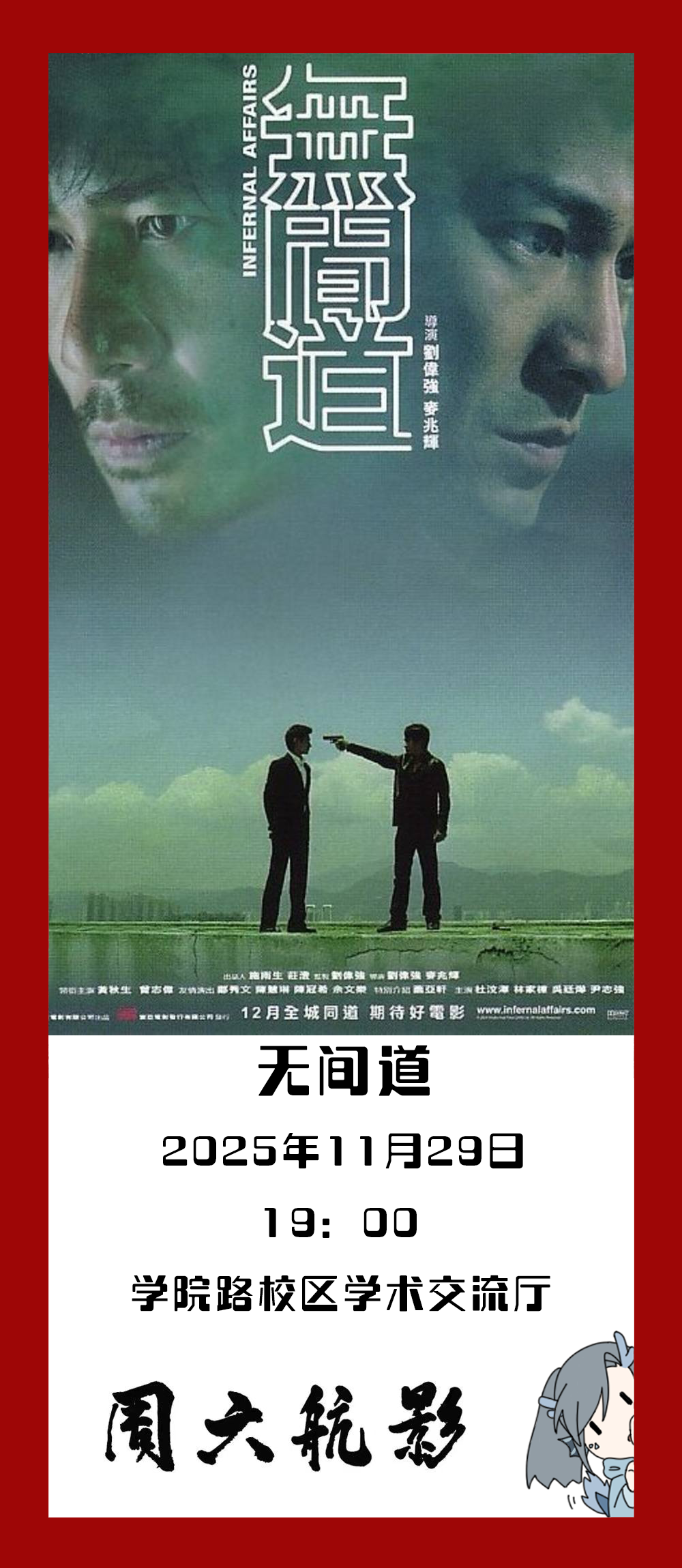 本周让我们一起走进《无间道》,在黑白交织的迷宫中,解开卧底身份的生存密码,在灵魂挣扎的褶皱中,读懂救赎与沉沦的生命难题,在善恶交织的灰色地带中,追问自我存在的终极意义。