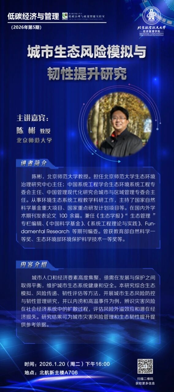 陈彬,北京师范大学教授。担任北京师范大学生态环境治理研究中心主任;中国系统工程学会生态环境系统工程专委会主任、中国管理现代化研究会城市与区域管理专委会主任。从事环境生态系统工程教学科研工作,主持了国家自然科学基金重大项目、国家重点研发计划项目等。在国内外学术期刊发表论文100余篇。兼任《生态学报》“生态管理”专栏编辑、《中国科学基金》《系统工程理论与实践》Fun-damental Research 等期刊编委。曾获教育部自然科学一等奖、生态环境部环境保护科学技术一等奖等。